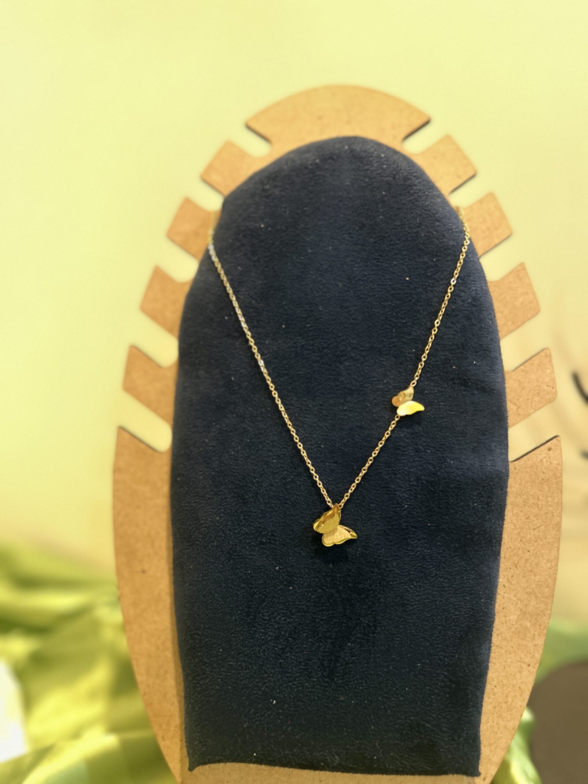 Light, graceful, and full of charm — the EvoraLuxe Golden Butterfly Necklace celebrates femininity in its most elegant form. This dainty chain features two delicate butterfly motifs crafted in a radiant gold-plated finish, symbolizing transformation and beauty.
