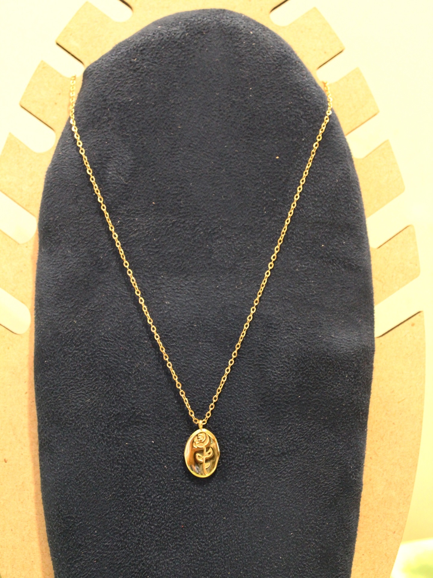 A delicate gold pendant necklace featuring a beautifully carved rose emblem. Minimal, elegant, and perfect for daily wear or gifting.